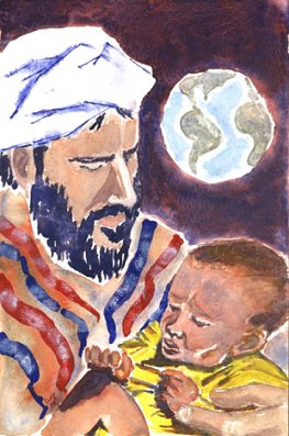 Lucy's Painting; This inspirational water-color painting of Yusuf Islam was created by Cat/Yusuf fan Lucy. She was inspired to draw this peaceful picture of Yusuf after his sudden deportation from the USA in September. She wanted to depict Yusuf in the same positive light that we all see him. The drawing is based on a photograph montage that actually exists, but she let her imagination do the rest.